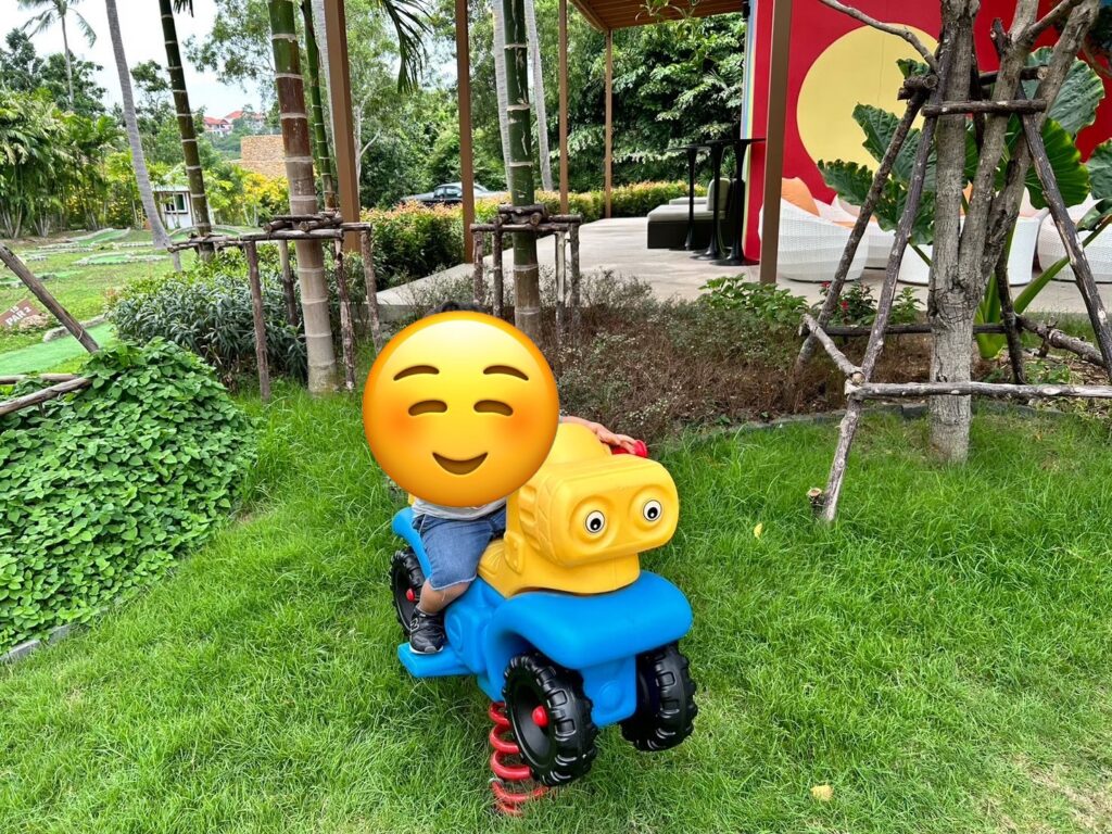 子供達はここのボールプールが気に入り、滞在中毎日通いました。屋外にはブランコ等の遊具もあります。