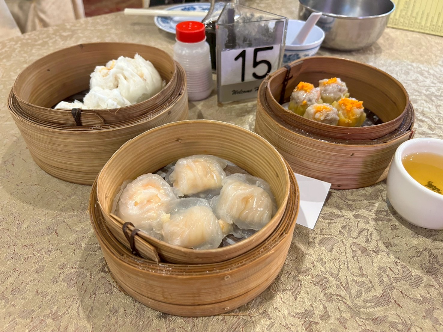 回ってきたカートから飲茶を受け取るのですが、点心系は蒸篭に入っているので、蓋を開けてもらわないと何が入っているのかわかりません。これいる?と積極的に聞いてくれる店員さんもいますが、蓋を開けてもくれない店員さんもいます。これは何?とか、これ開けて?とか遠慮せず話しかけて、どんどん見せてもらった方が良さそうです。