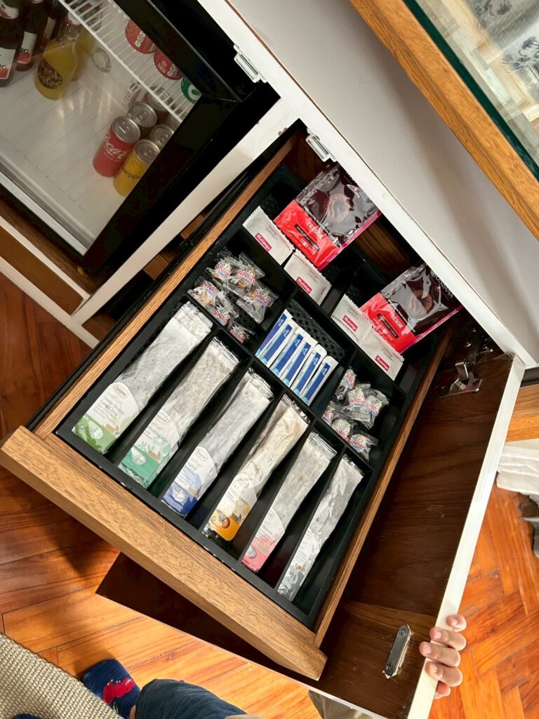 部屋には、無料の飲み物、スナックがあり、毎朝、補充してくれました。