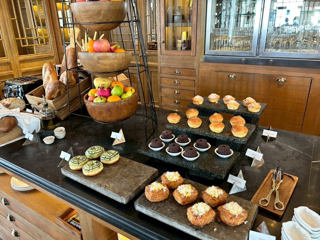 アラカルトは、定番の卵料理やサラダ、ローカル料理等様々な種類の中から何個でもオーダーでき、パンやドーナツ、マフィン類はブッフェ形式です。日替わりヌードルも用意されていて、毎日美味しく楽しめました。