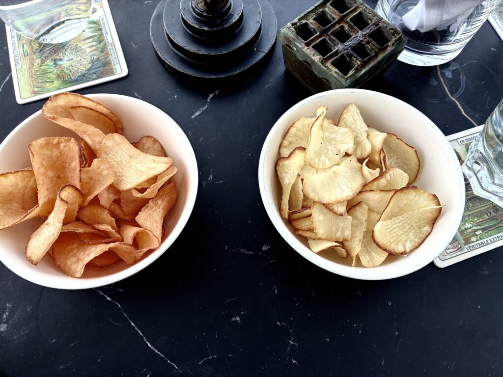 海に沈む夕日を眺めながら、カクテルやモクテル、子供用のシェイクやジュースも選び放題です。おつまみとして出されるチップスがとても美味しくて、おかわりまでしてしまいました。