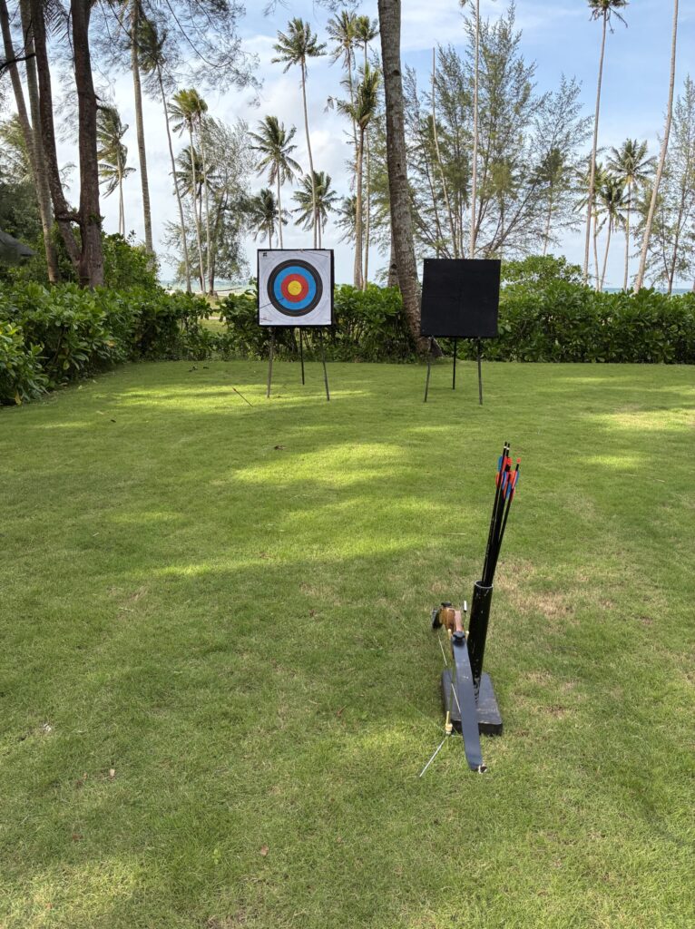 事前にHPで見ていて、やってみたかったアクティビィティが、アーチェリー。