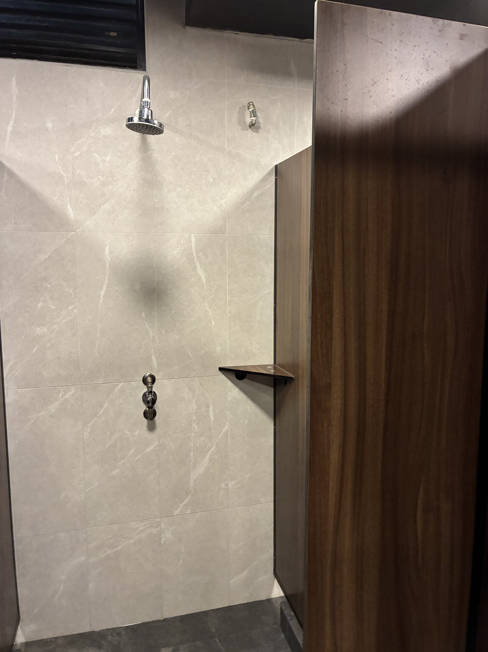 個室になったシャワー付きの更衣室があります。シャワーで濡れないように、手前に荷物を置くスペースもあります。結構広めで、子供と入っても狭くありませんでした。