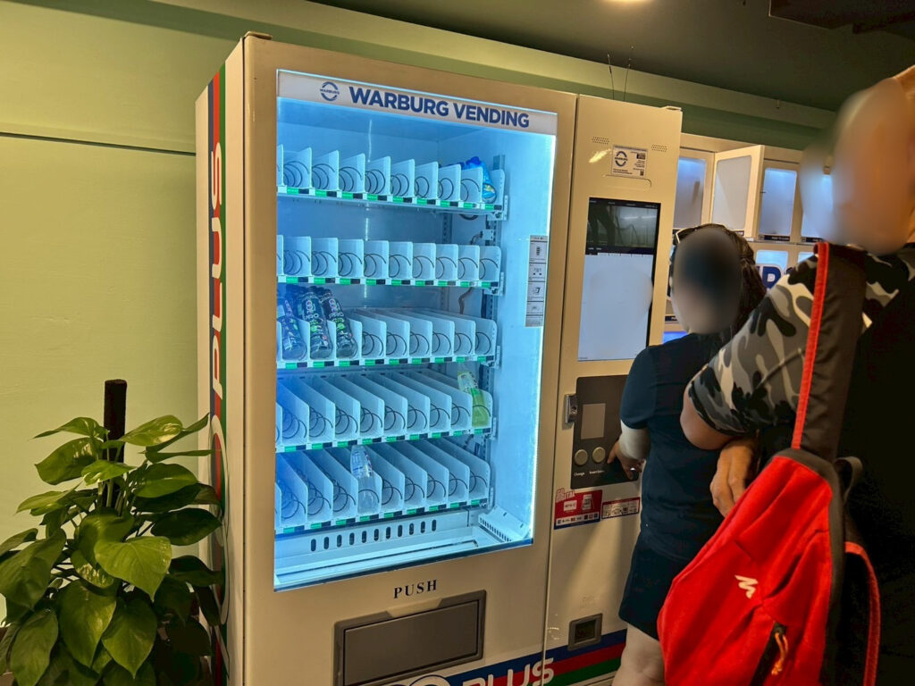 ロッカーはキャッシュレスで、手前の自販機と一体になった操作パネルで借りることができます。