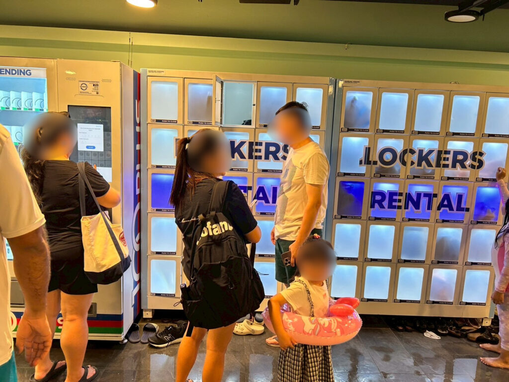 周りを見ると、荷物を預けずにプールサイドに置いている人がかなり多かったです。が、やはり心配なので、預けたほうが安心かと思います。ロッカーは出し入れ自由ですし。